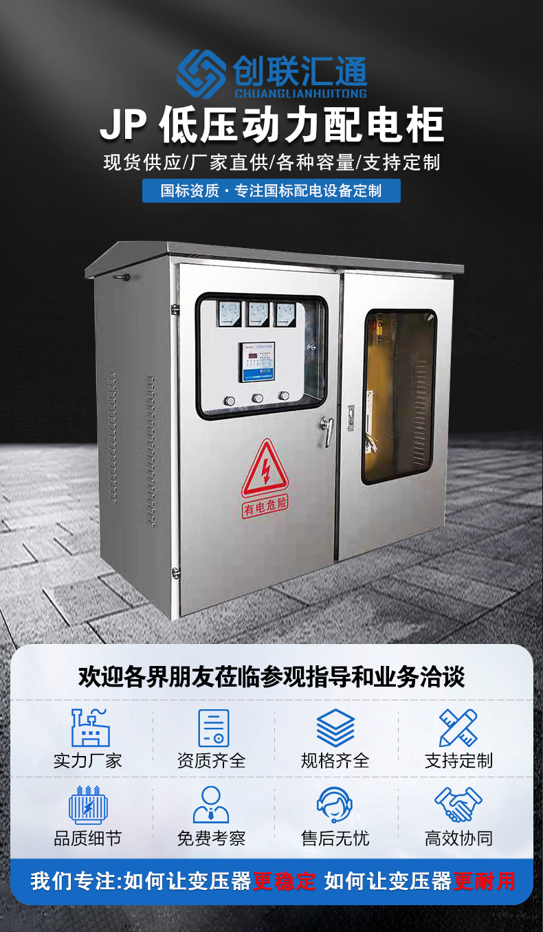 變壓器的綜合配電箱又稱為JP柜。戶外綜合配電箱是集計(jì)量、出線、無功補(bǔ)償?shù)?