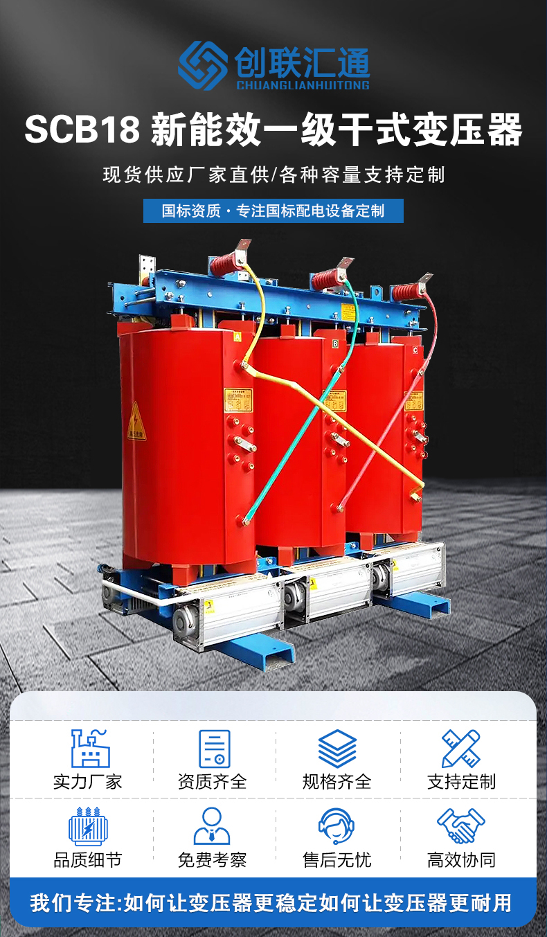 SCB18干式變壓器是符合《GB20052-2020電力變壓器能效限定值及能效等級國家標準》一級能效標準的新型號干式變壓器,是節(jié)能電力變壓器。SCB18變壓器相較SCB14變壓器空載損耗降低20%,負載損耗保持不變。