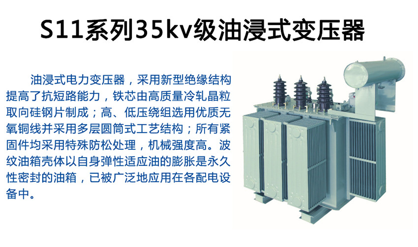 油浸式電力變壓器,采用新型絕緣結(jié)構(gòu),提高了抗短路能力,鐵芯由高質(zhì)量冷軋晶粒取向硅鋼片制成;高、低壓繞組選用優(yōu)質(zhì)無氧銅線并采用多層圓筒式工藝結(jié)構(gòu);所有緊固件均采用特殊防松處理,機械強度高。波紋油箱殼體以自身彈性適應(yīng)油的膨脹是永久性密封的油箱,已被廣泛地應(yīng)用在各配電設(shè)備中。